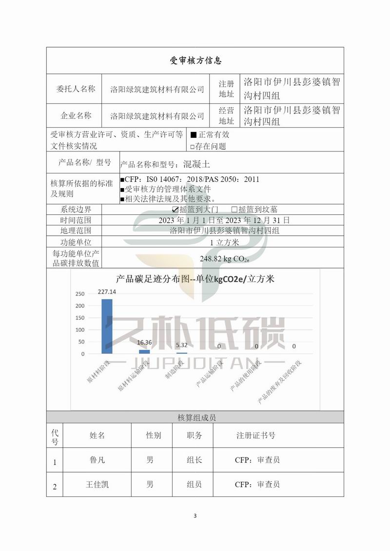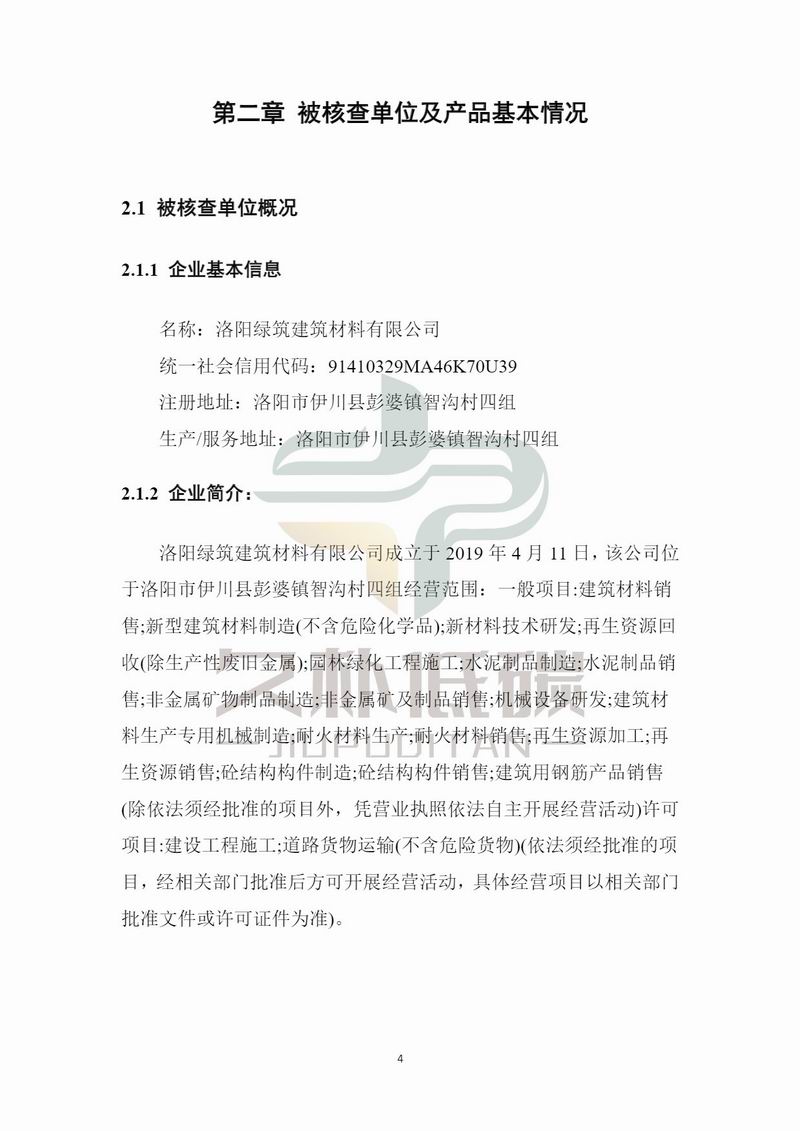 洛陽綠筑建筑材料有限公司-碳足跡報告