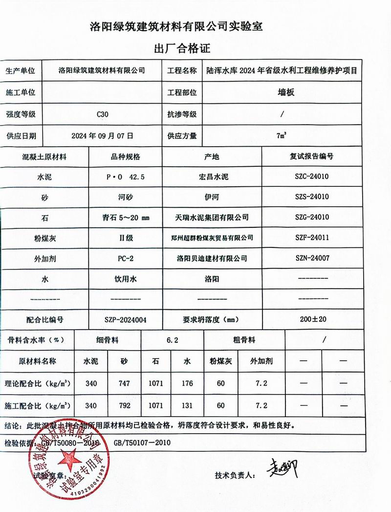 綠筑建筑實(shí)驗(yàn)室混凝土配合比試驗(yàn)報(bào)告