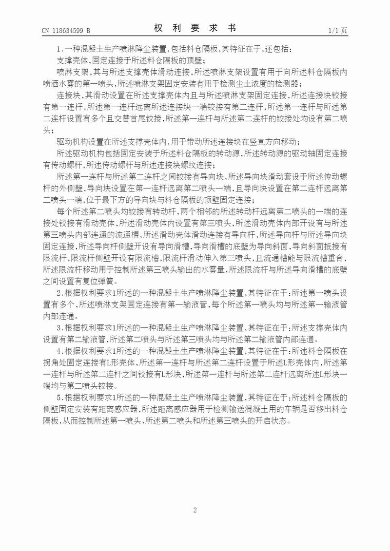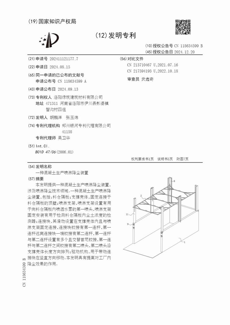 洛陽綠筑取得一種混凝土生產(chǎn)噴淋降塵裝置專利