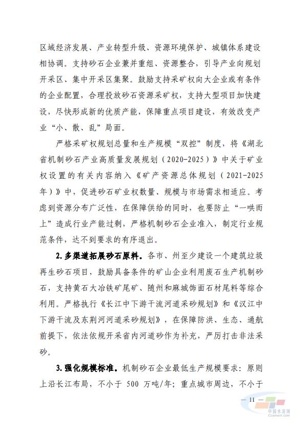 優(yōu)化產(chǎn)業(yè)結(jié)構(gòu)促進(jìn)產(chǎn)業(yè)融合。鼓勵(lì)砂石企業(yè)以資源、資本等為紐帶,通過市場(chǎng)化、法治化手段實(shí)施兼并重組,提升產(chǎn)業(yè)集中度;支持砂石企業(yè)向下游延伸產(chǎn)業(yè)鏈,發(fā)展一體化產(chǎn)業(yè)園區(qū);支持建設(shè)單位和建筑砂石礦山企業(yè)建立長期協(xié)作關(guān)系。
