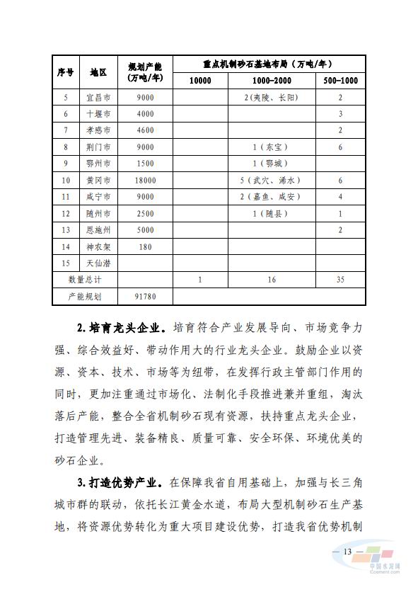 近期,湖北省工信廳印發(fā)了關(guān)于《湖北省機(jī)制砂石產(chǎn)業(yè)高質(zhì)量發(fā)展規(guī)劃(2020-2025)》的通知。據(jù)悉,疫情經(jīng)濟(jì)重振、新基建等將增加砂石需求,預(yù)測(cè)未來5年湖北省砂石需求總體呈增長態(tài)勢(shì)。目標(biāo)到2025年,全省機(jī)制砂石年產(chǎn)能達(dá)到9.9億噸以上,其中機(jī)制砂年產(chǎn)能4億噸以上,實(shí)現(xiàn)湖北省砂石產(chǎn)業(yè)可持續(xù)發(fā)展。