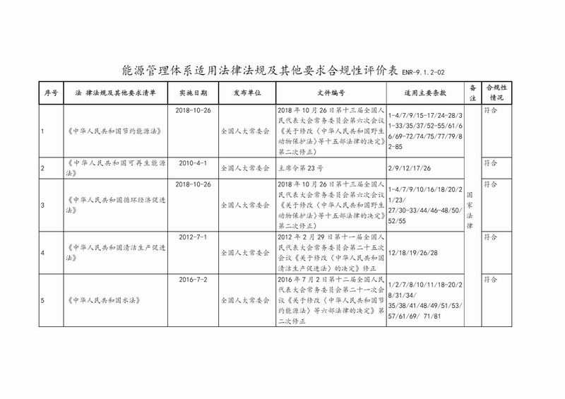 ENR-9.1.2-02 能源管理體系適用法律法規(guī)及其他要求合規(guī)性評(píng)價(jià)表