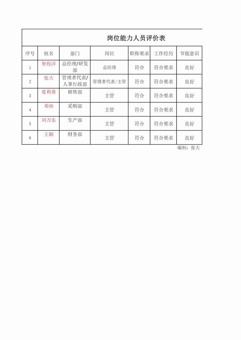 崗位人員能力評(píng)價(jià)表