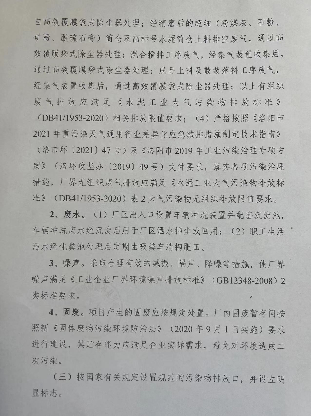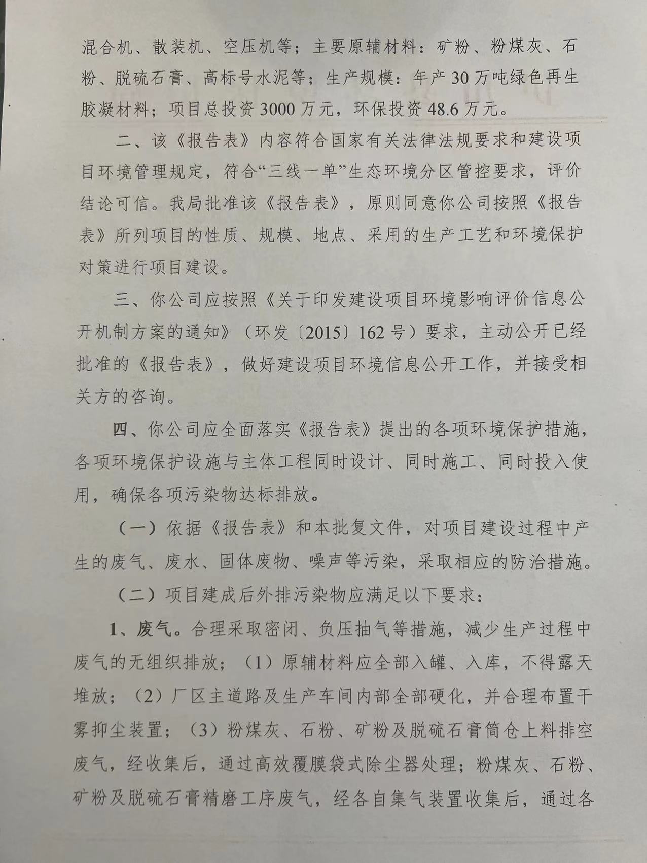 關于洛陽綠筑建筑材料有限公司年產(chǎn)30萬噸 綠色再生膠凝材料項目環(huán)境影響 報告表的批復