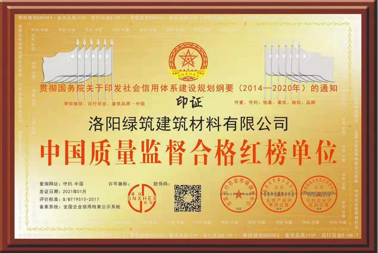 洛陽綠筑建筑材料有限公司 互認評價結果證書
