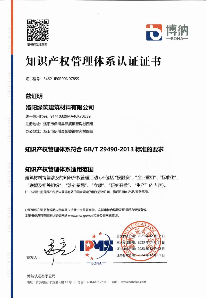知識(shí)產(chǎn)權(quán)管理體系認(rèn)證證書