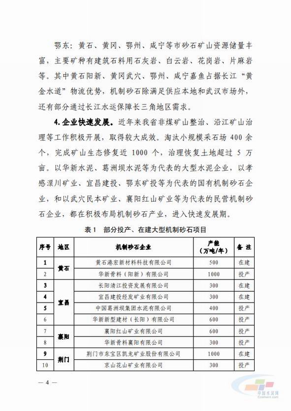 面對(duì)供不應(yīng)求的機(jī)制砂市場(chǎng),不少省市開始積極布局,大力推行機(jī)制砂產(chǎn)業(yè)補(bǔ)足行業(yè)“短板”,湖北、重慶就是其中代表。