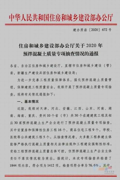 住建部通報2020年預(yù)拌混凝土質(zhì)量專項抽查情況!