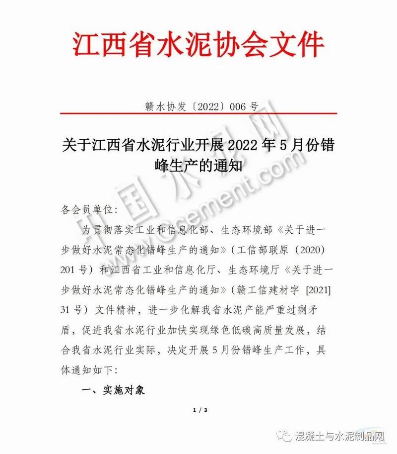 據(jù)悉,江西省水泥協(xié)會近期發(fā)布《關(guān)于江西省水泥行業(yè)開展2022年5月份錯峰生產(chǎn)的通知》,要求江西省境內(nèi)渉及生產(chǎn)熟料的49條生產(chǎn)線2022年5月10日00:00-5月19日24:00,錯峰生產(chǎn)10天。(錯峰文件見文末)