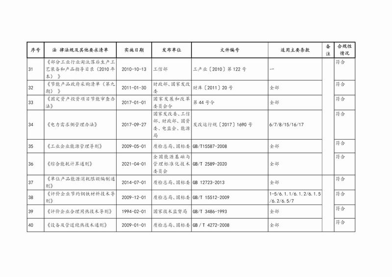 ENR-9.1.2-02 能源管理體系適用法律法規(guī)及其他要求合規(guī)性評(píng)價(jià)表