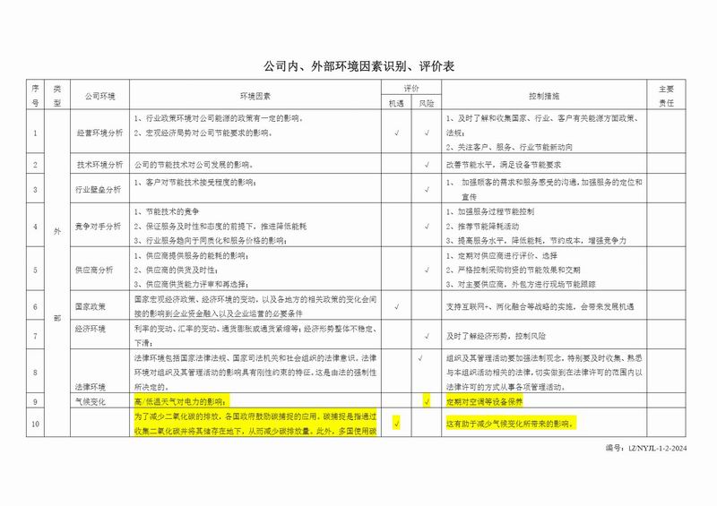 公司內(nèi)外部環(huán)境識(shí)別評(píng)審表