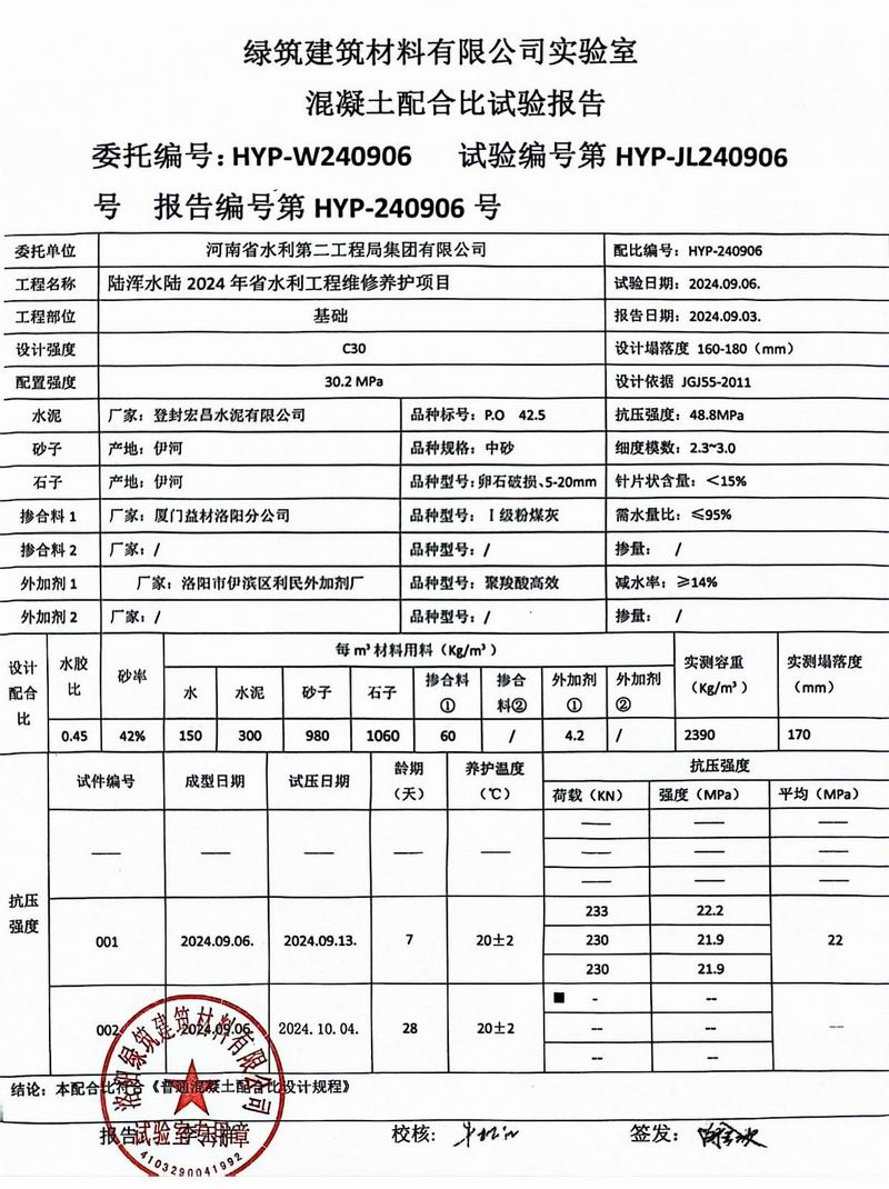 綠筑建筑實(shí)驗(yàn)室混凝土配合比試驗(yàn)報(bào)告